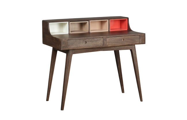 Escritorio en madera maciza (mango), 2 cajones y 4 huecos
